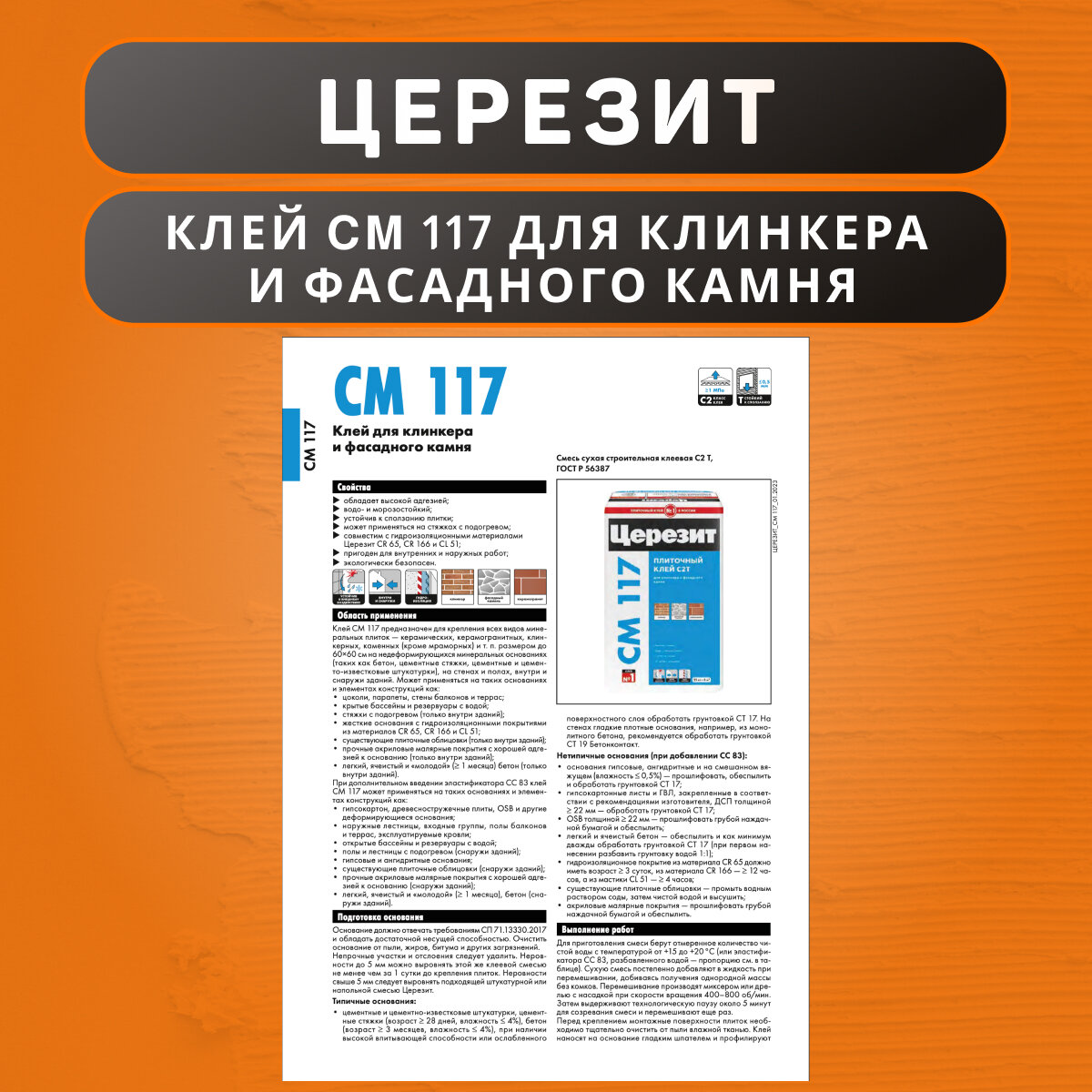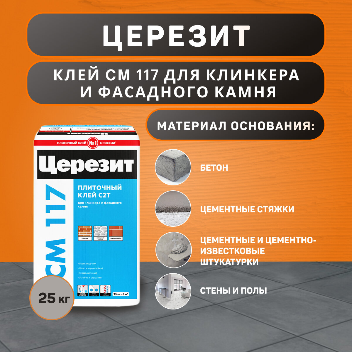 Клей для плитки и камня Ceresit СМ 117 серый 18 л 25 кг