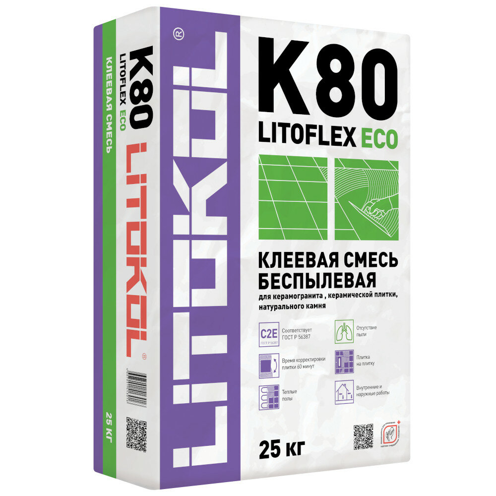 Литокол К80 Литофлекс Эко клей для керамогранита (25кг) / LITOKOL K80 Litoflex Eco клей для керамического гранита (25кг)
