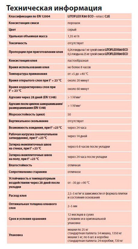 LITOKOL K80 ECO 25 кг. Плиточный клей Litoflex K80