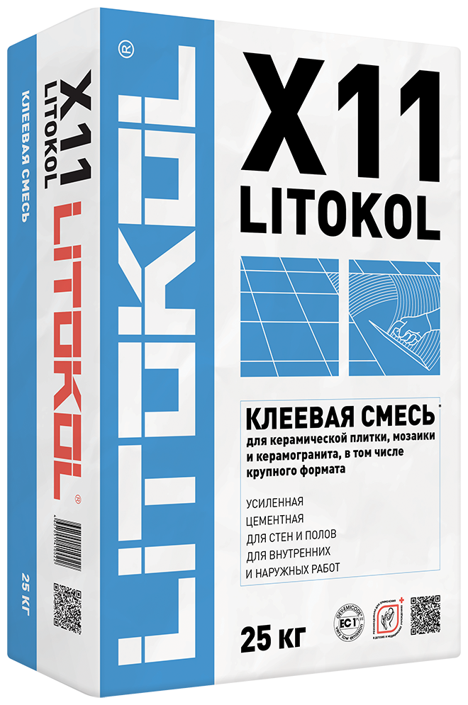 Литокол X11 Эво клей для плитки и керамогранита (25кг) / LITOKOL X11 Evo эластичный клей для плитки, керамогранита и камня (25кг)