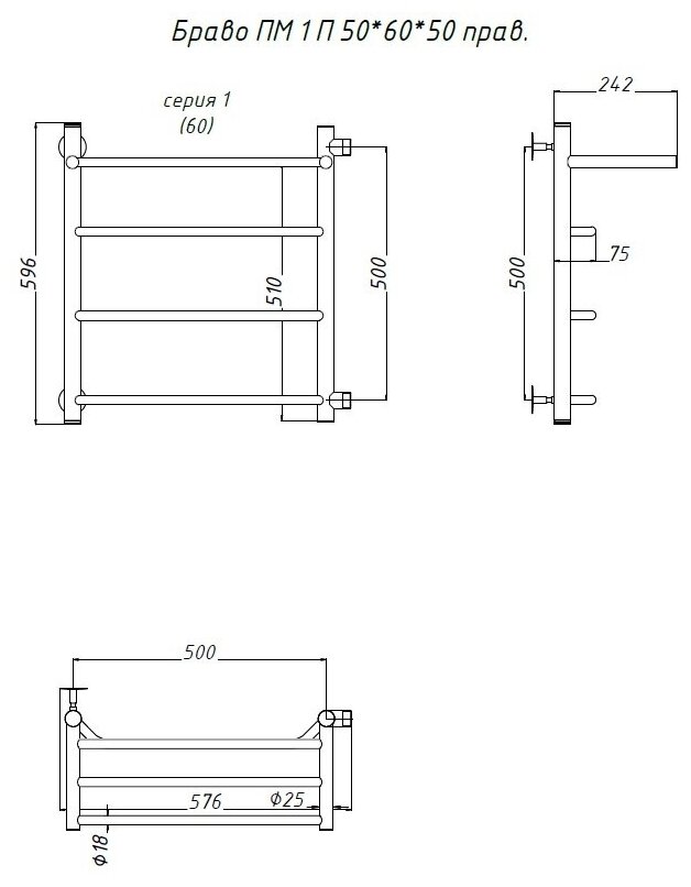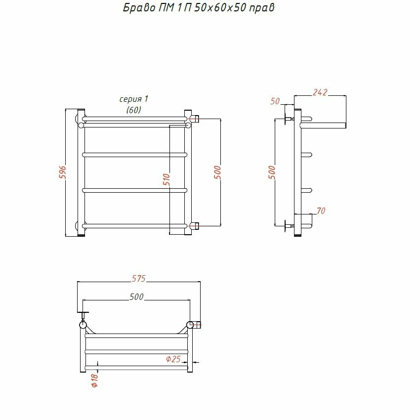 Полотенцесушитель Браво ПМ 1 П 50*60*50 прав