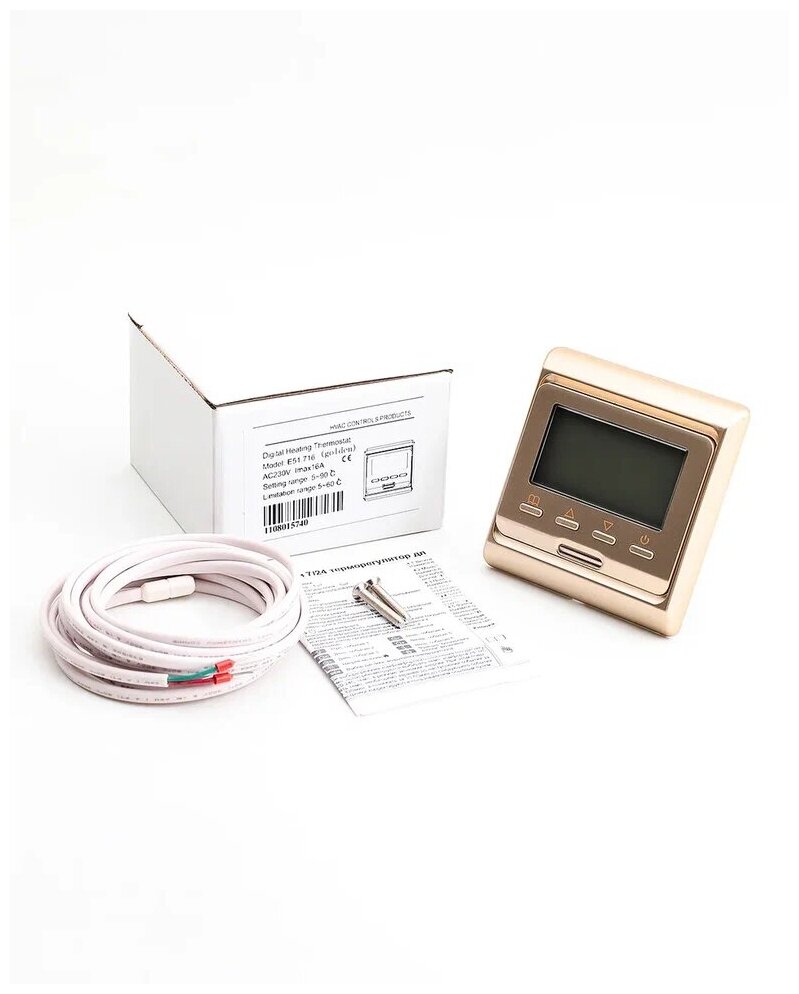 Купить Теплый пол электрический под плитку Nunicho 3 м2 с программируемым золотистым терморегулятором в комплекте, нагревательный мат в стяжку, термостат с датчиком тепла