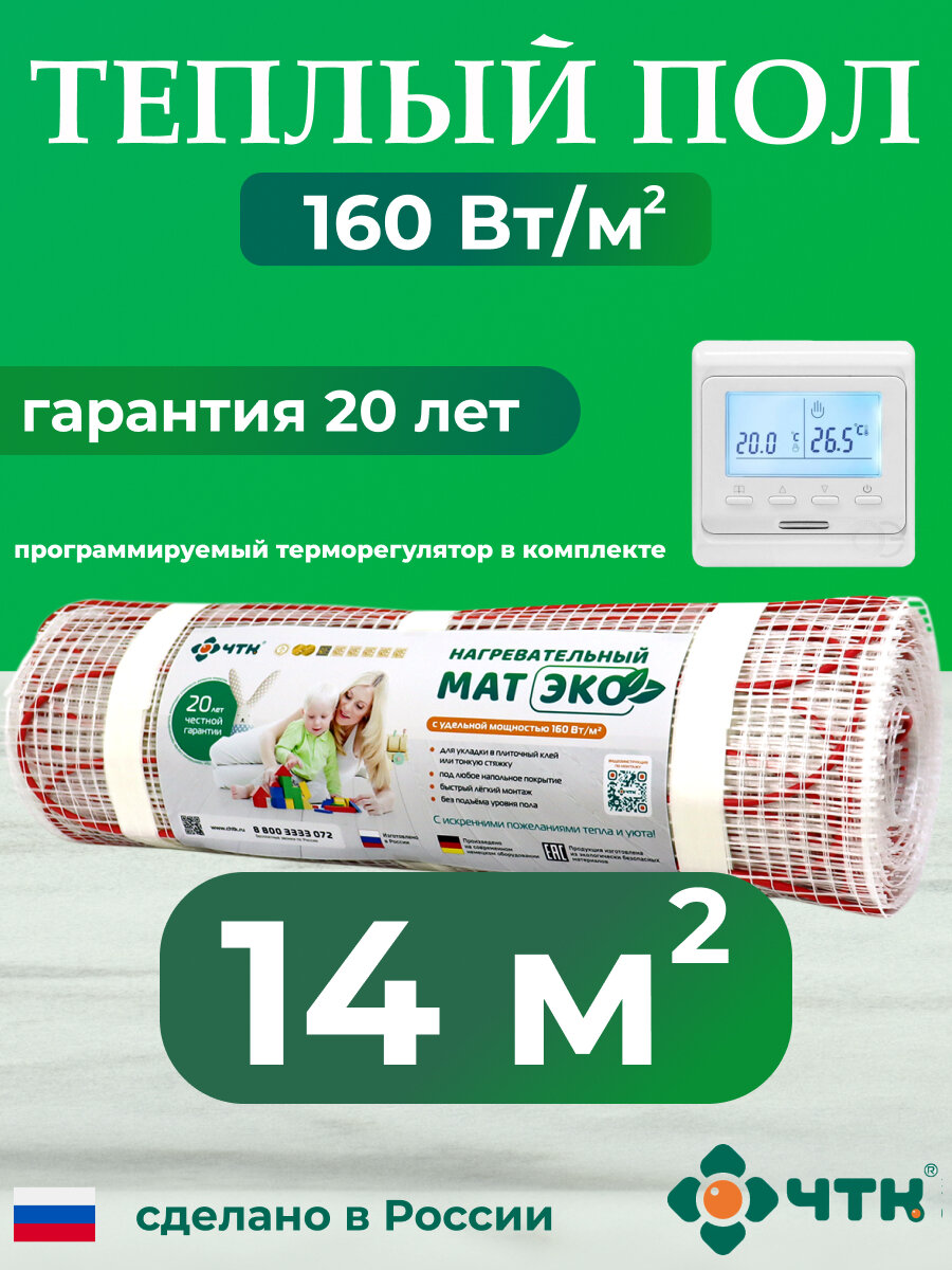 Теплый пол ЧТК ЭКО. Нагревательный мат 14 кв.м., с программируемым терморегулятором.