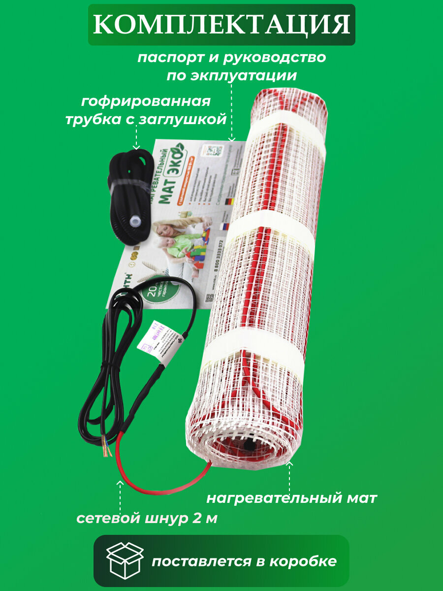 Комплект: Мат нагревательный ЭКО 3,5 кв. м. 560 Вт. + программируемый терморегулятор