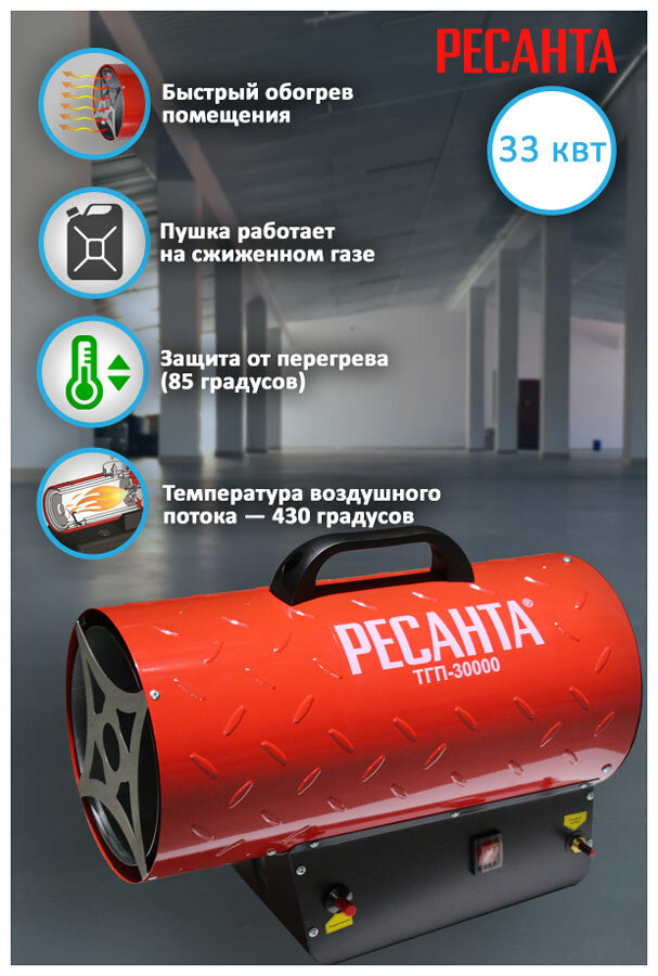 СохранитьГазовая тепловая пушка РЕСАНТА ТГП-30000 (30 кВт) интересное: