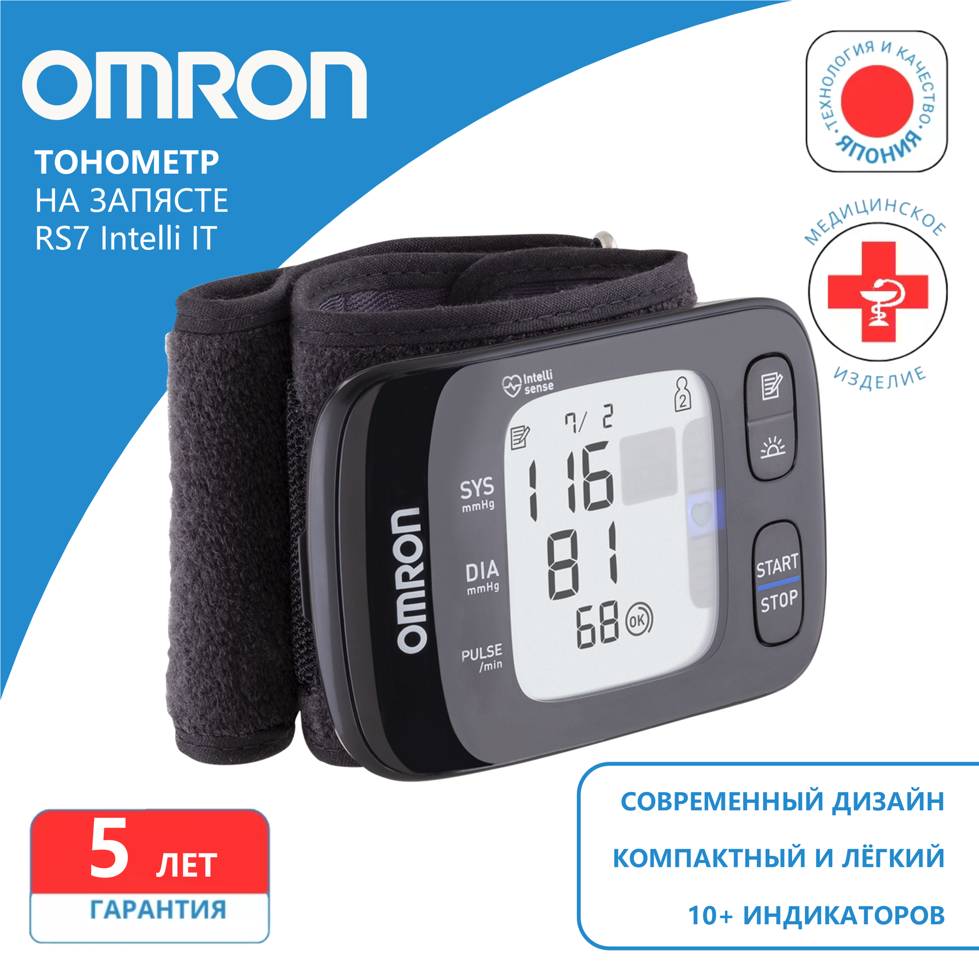 Тонометр автоматический на запястье RS7 Intelli IT Omron/Омрон (HEM-6232T-RU) интересное: