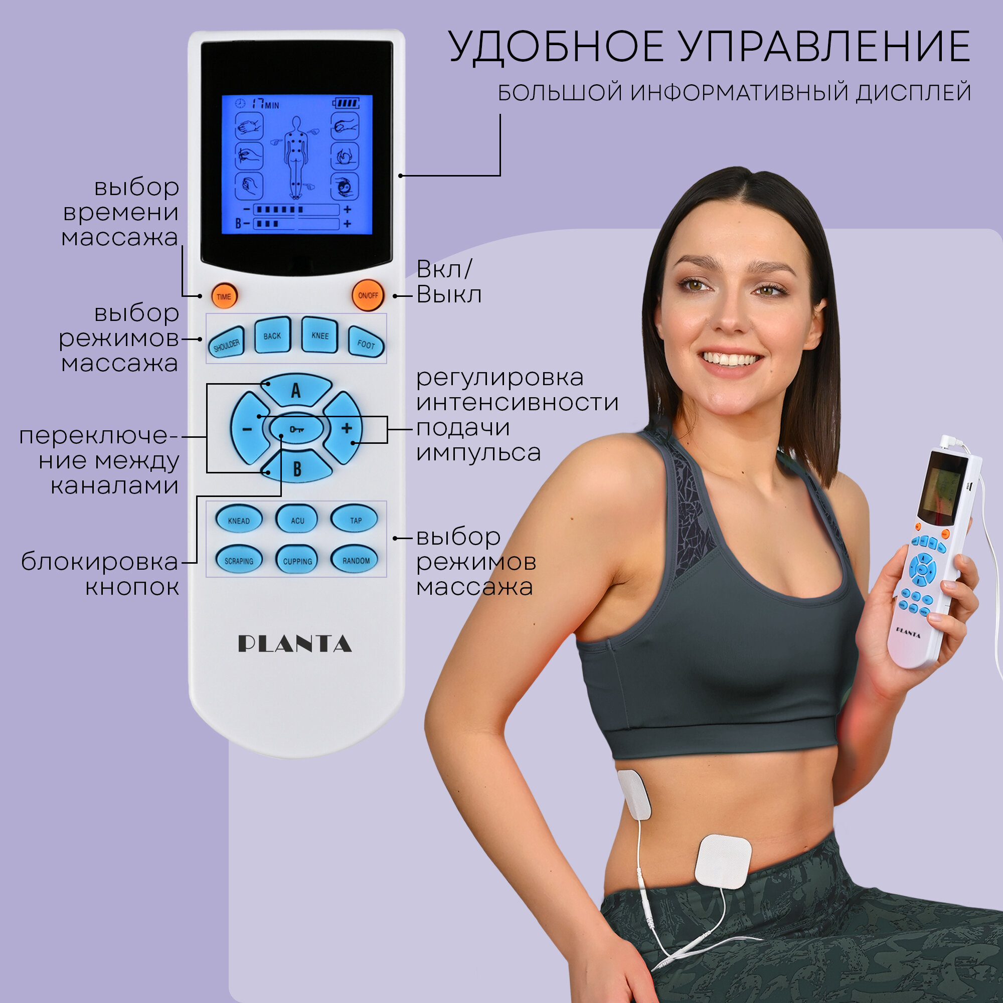 PLANTA Массажер для тела миостимулятор тренажер мышц EMS+TENS EMS-200, 4 канала, 8 электродов, 10 режимов, тренажер для пресса интересное: