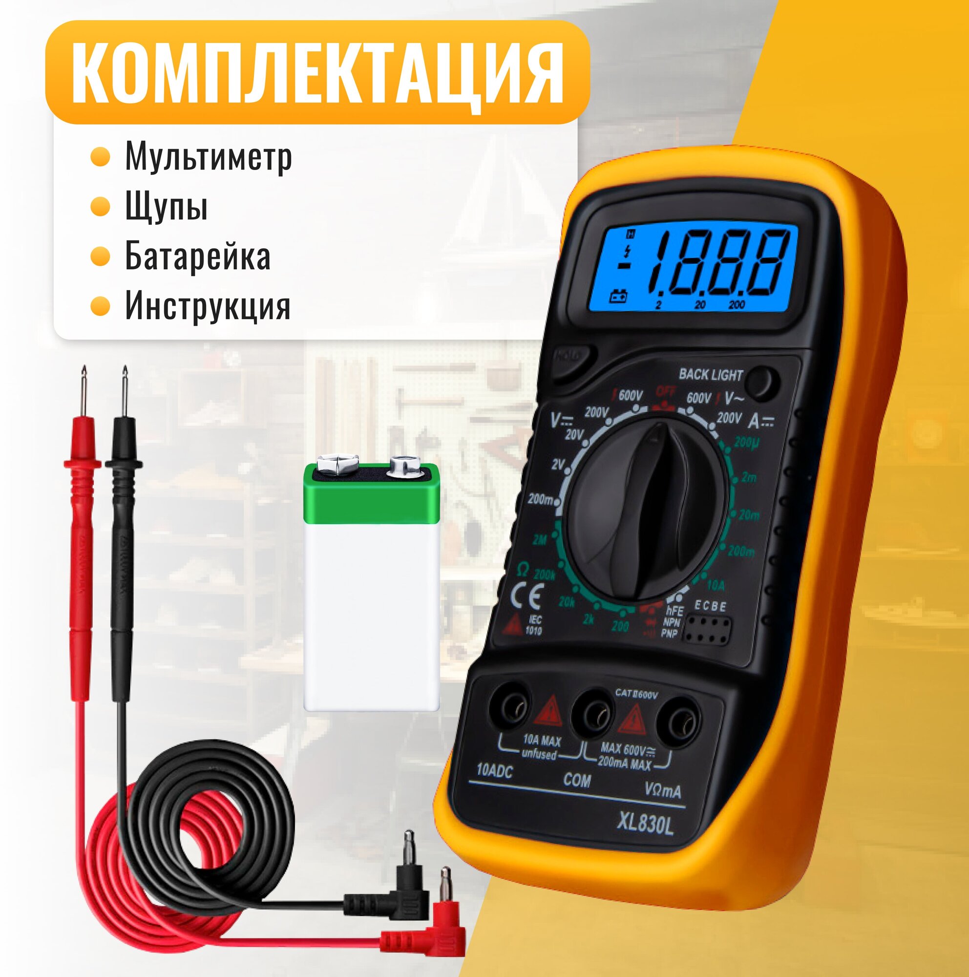 Желтый цифровой мультиметр XL830L с прозвонкой интересное:
