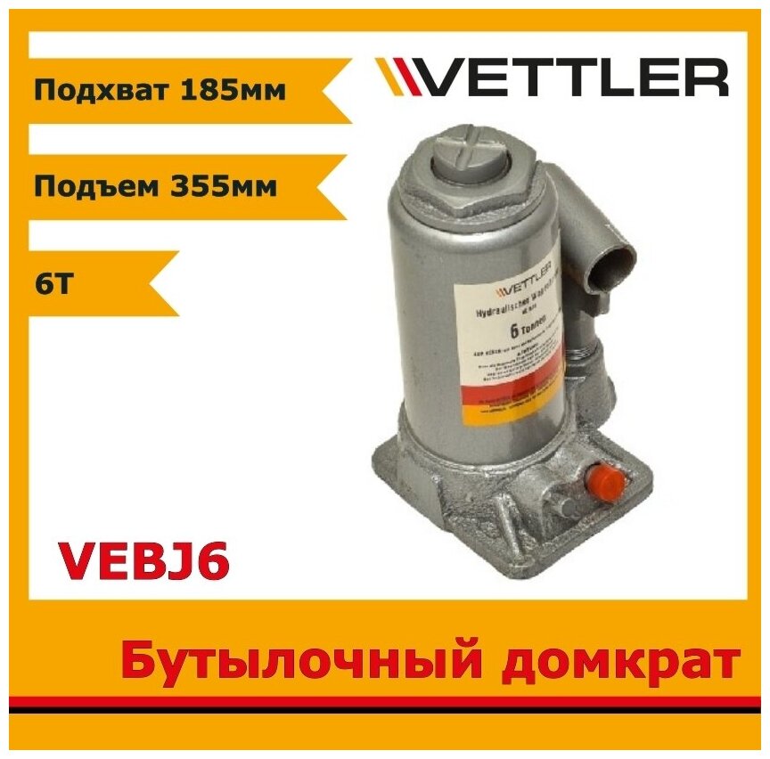VETTLER VEBJ6 Домкрат гидравлич (6т) бутылочный в кейсе (185x355) VETTLER