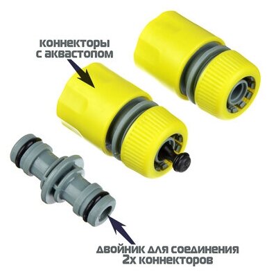 Набор для полива (1коннектор с аквастопом d1/2, 1коннектора d1/2+двойник) INBLOOM