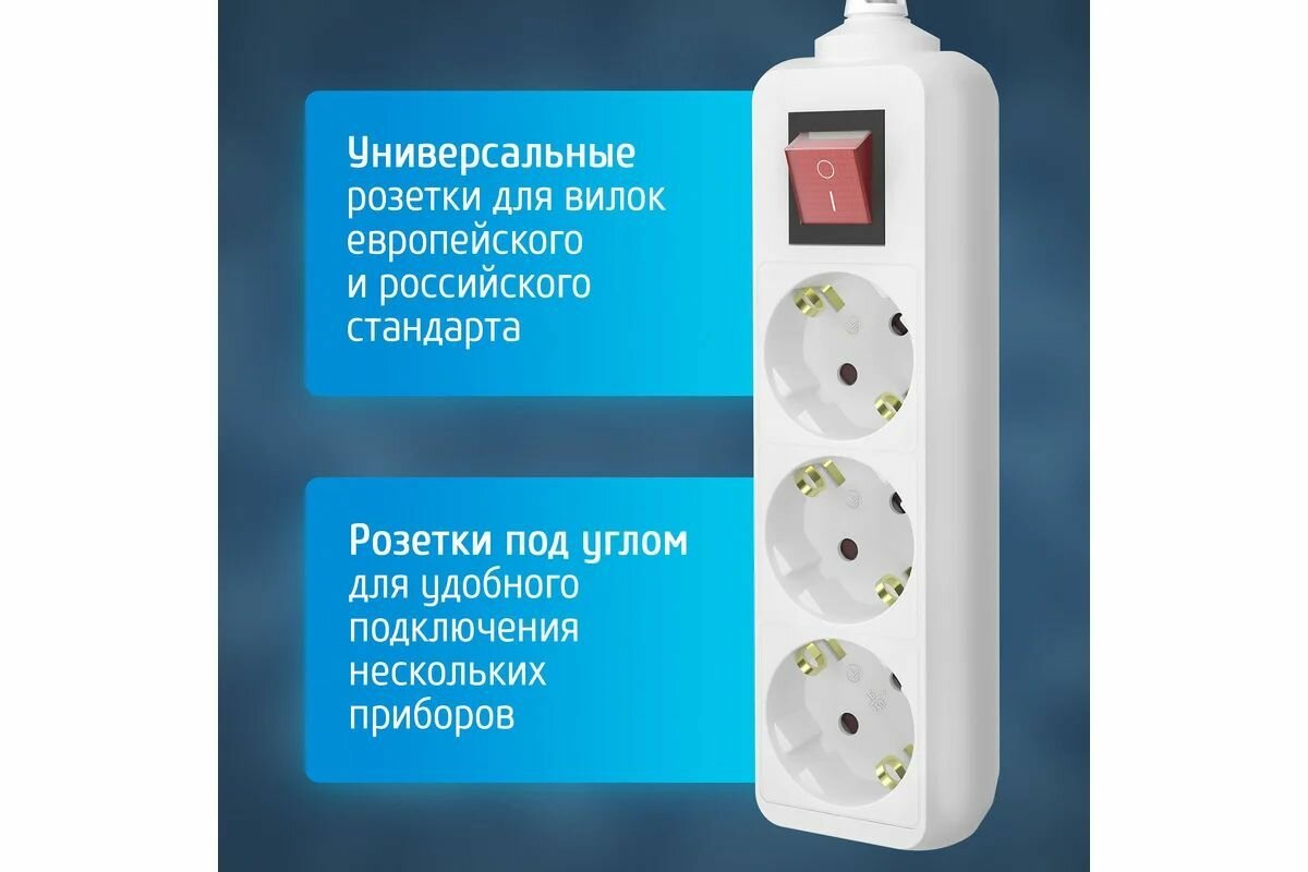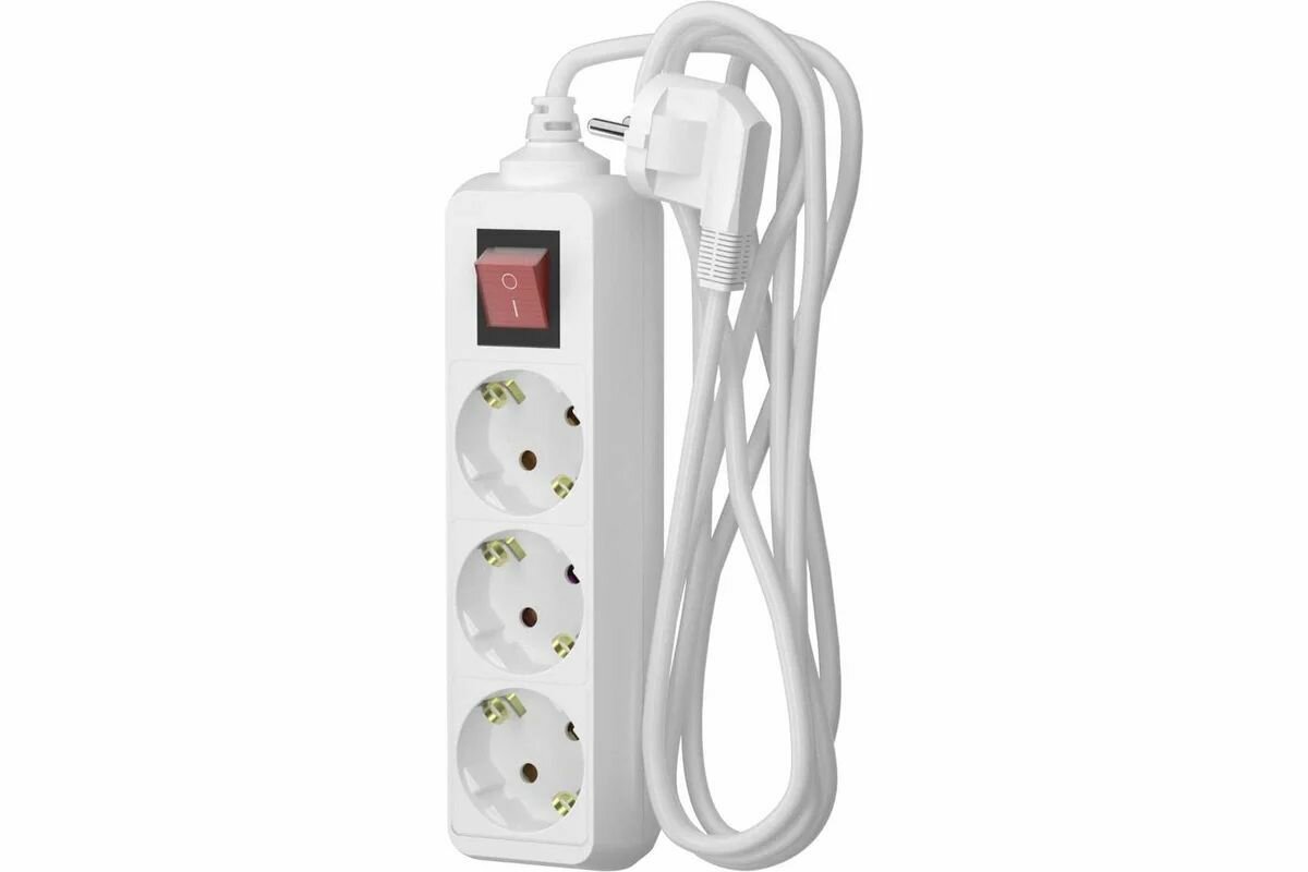 Удлинитель сетевой для розетки фотон 16А 3 метра 3 розетки с выключателем с заземлением белый, ГОСТ