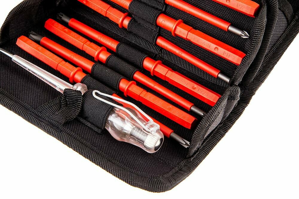 Отвертка Wera WE-003471 со сменными изолированными жалами, индикатор и ключи от шкафов в сумке