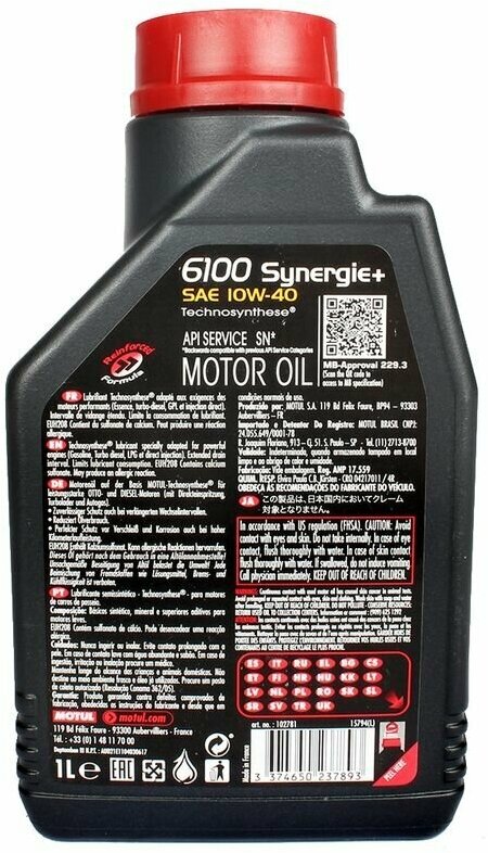 Масло моторное MOTUL Synergie+ 6100 10W40, Technosynthese 4 литра Масл MOTUL 10W40 61 101491/109463