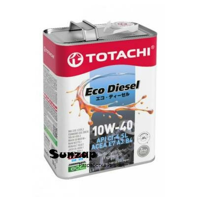 Масло моторное Totachi Eco Diesel 10w40 полусинтетическое, API CI-4/SL, ACEA E7/A3/B4, JASO DL-0/DH-1, для дизельного двигателя, 4л, арт. 11204