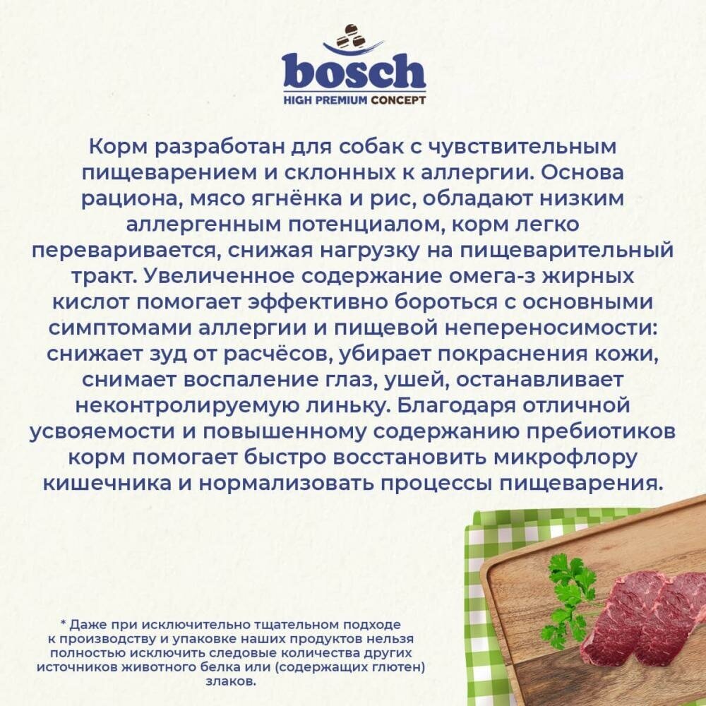 Купить Сухой корм для собак Bosch Sensitive, ягненок, с рисом 1 уп. х 1 шт. х 3 кг