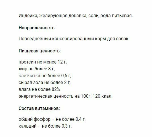 | Состав | индейка, вода, желирующая добавка, соль |