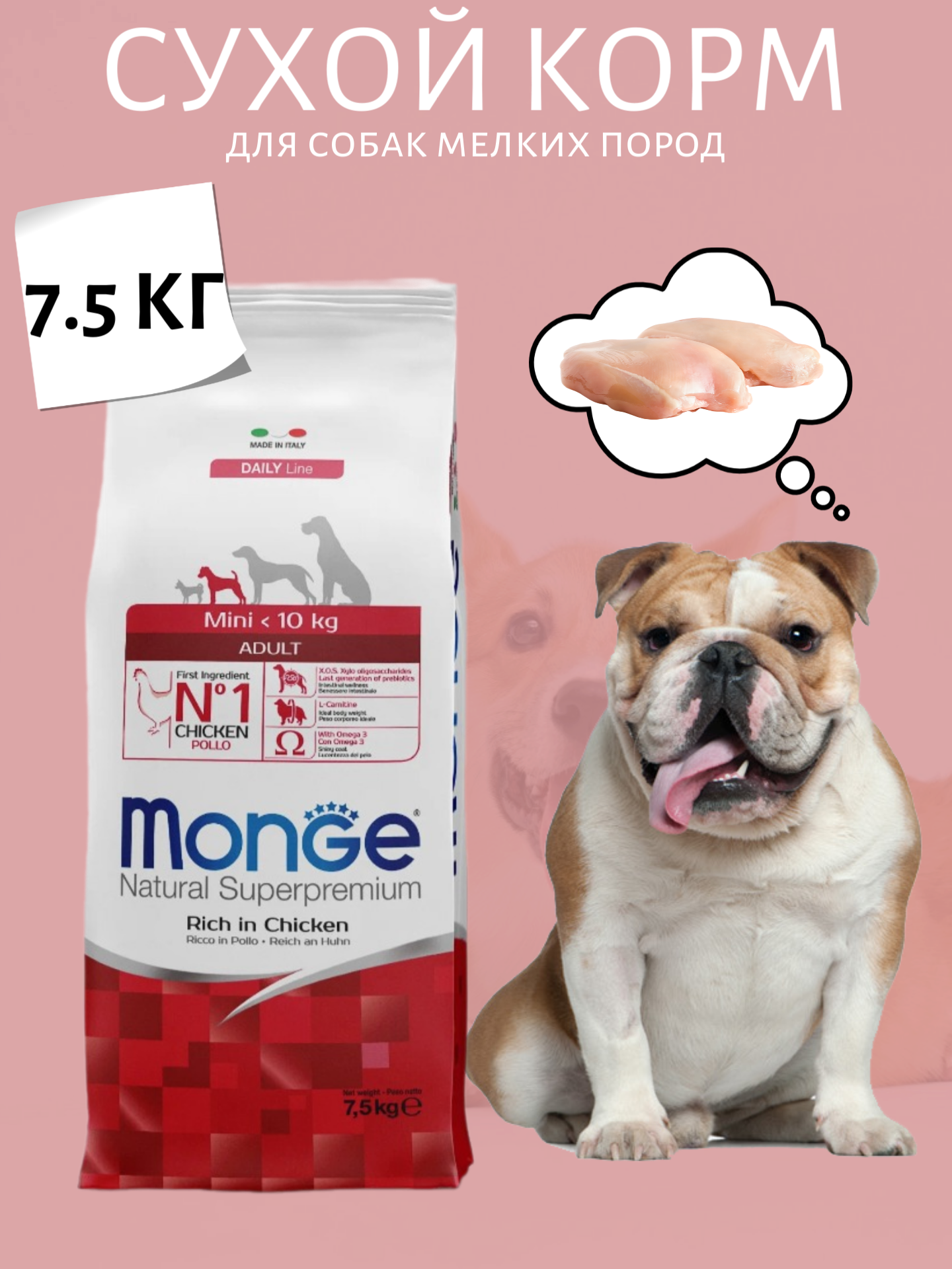 Сухой корм Monge Dog Daily Line Mini для взрослых собак мелких пород, из курицы 7,5 кг