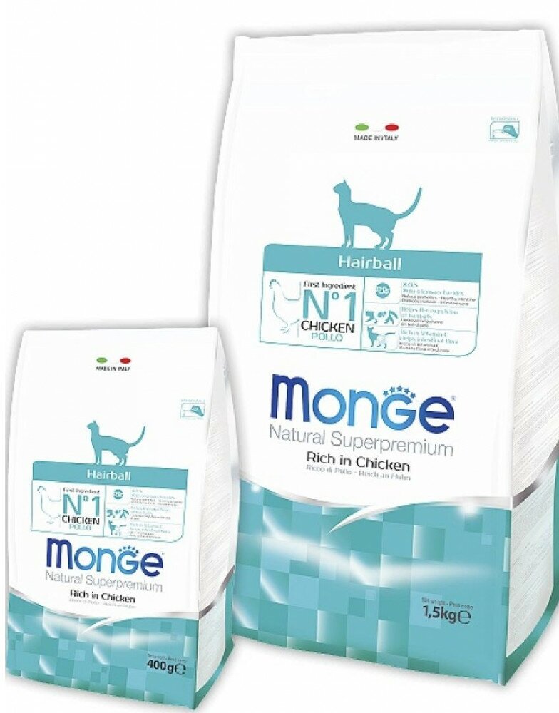 Сухой корм для кошек Monge Hairball Natural Superpremium, для вывода шерсти, с курицей 1.5 кг