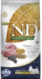 Сухой низкозерновой корм с ягненком и черникой для собак мелких пород Farmina N&D Ancestral Grain Adult Mini, 7 кг