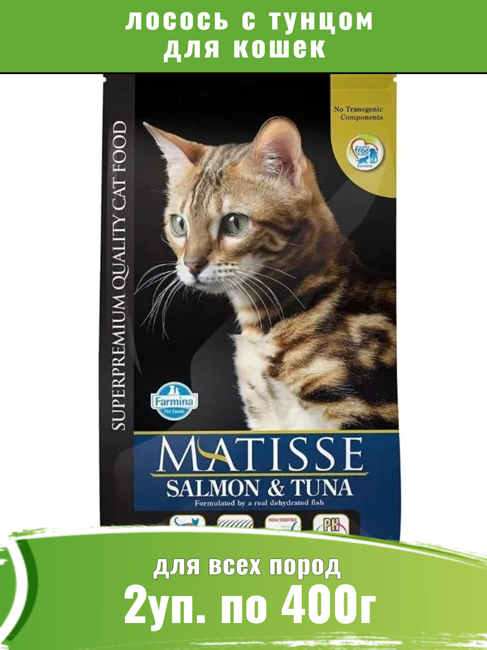 Купить Сухой корм Farmina Matisse для взрослых, пожилых кошек и котов всех пород, Фармина Матисс рацион со вкусом лосося и тунца, 2шт по 400г