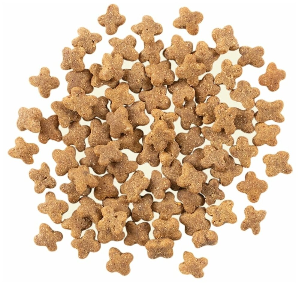 | Отзыв: | Переход на этот корм в связи с его наличием. Прежних больше не поставляют. Размер и форма гранул отличные для мелких пород: "лепестки" проще разгрызть, чем цельный кусочек. Пакет закрывается на липучке, которая надёжнее, чем полиэтиленовые ЗИП соединения, которые вечно отклеиваются и не выполняют свои функции |