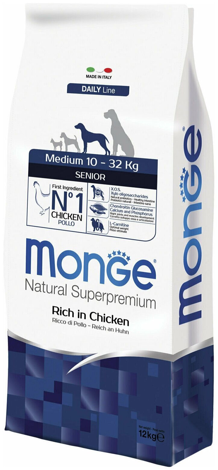 Сухой корм для пожилых собак Monge Daily Line, курица 12 кг (для средних пород)