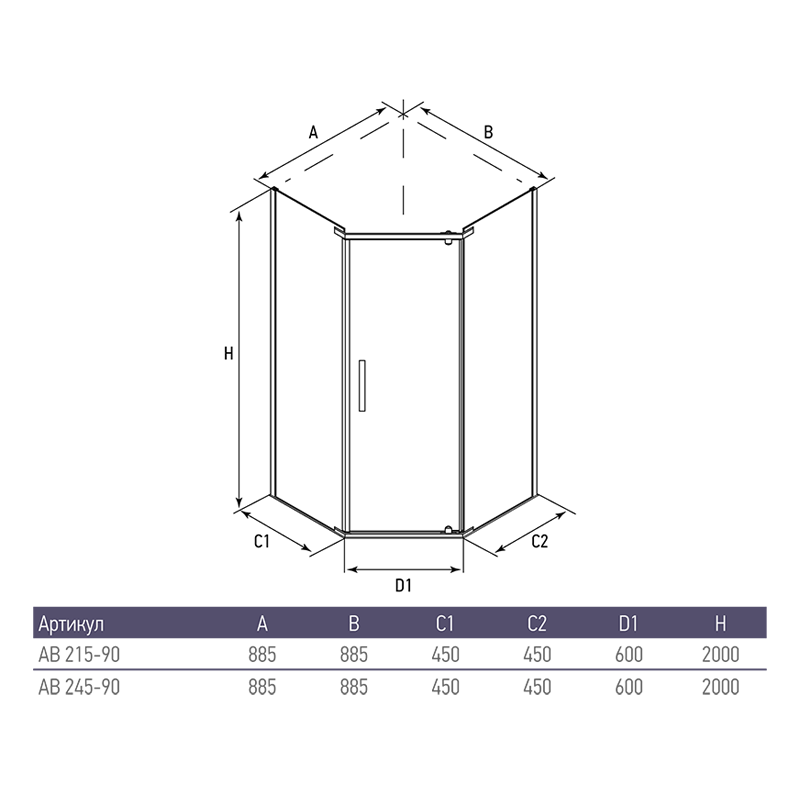 Душевое ограждение Alex Baitler AB215-90 (900x900x2000) пятиугольное, прозрачное