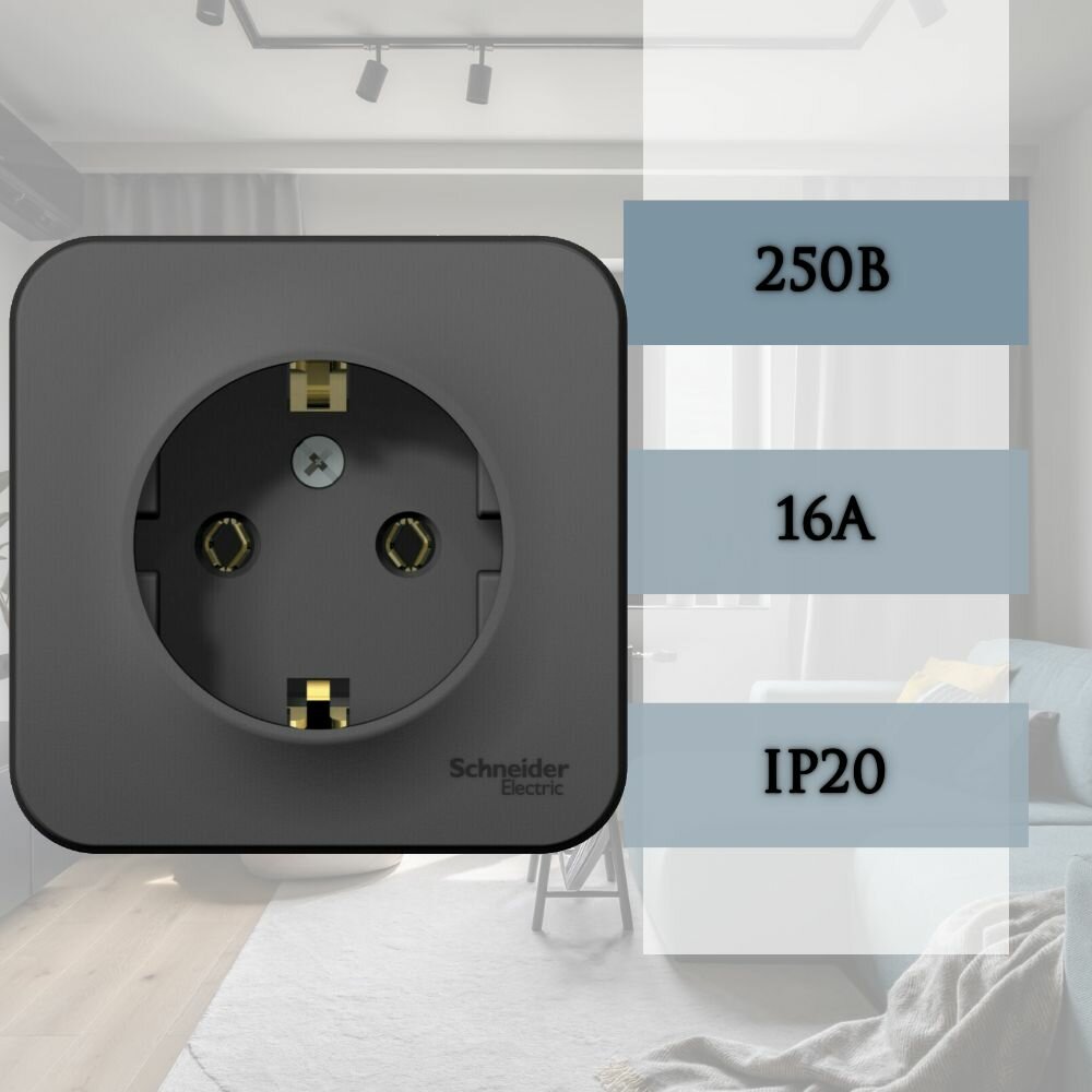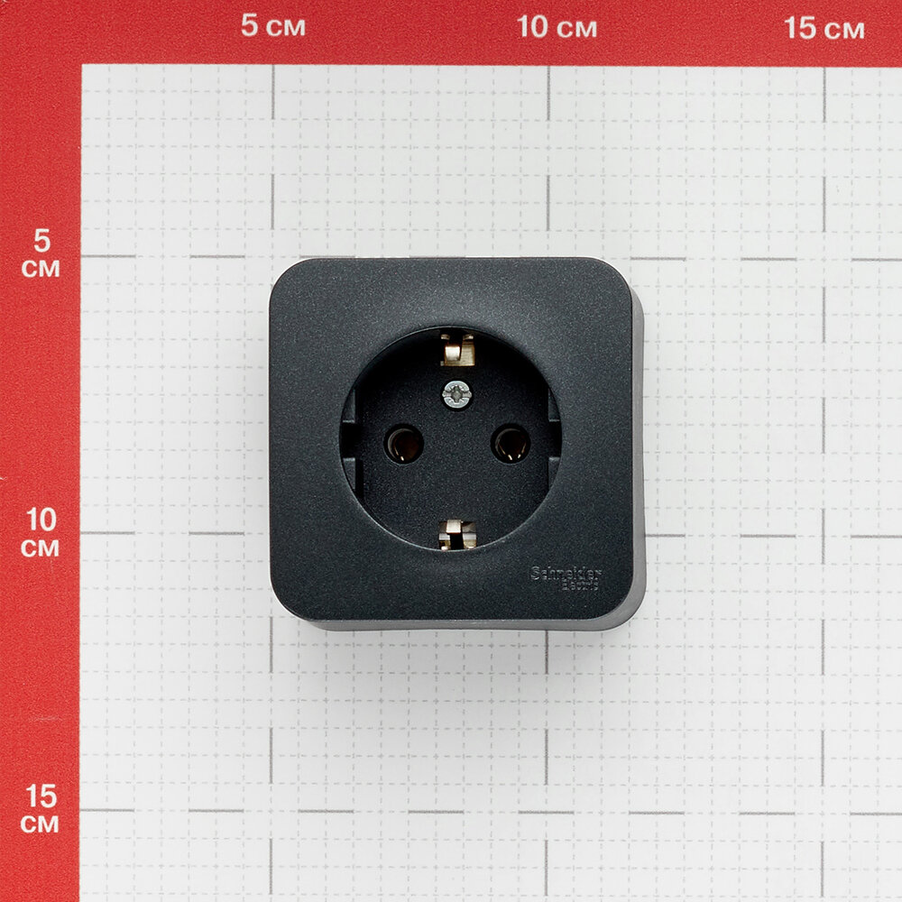 Розетка Schneider Electric Blanca с заземлением с защитными шторками антрацит для открытой проводки