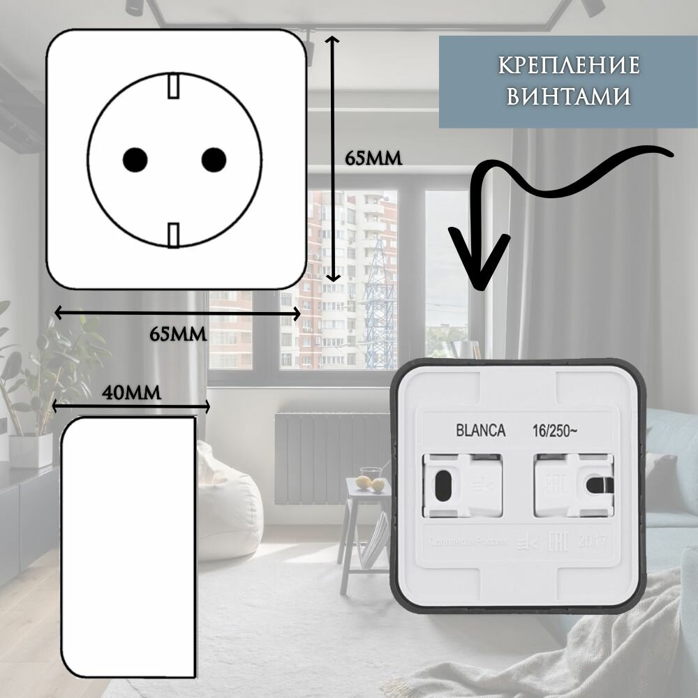 Розетка Schneider Electric Blanca с заземлением с защитными шторками белая для открытой проводки (комплект из 8 шт)