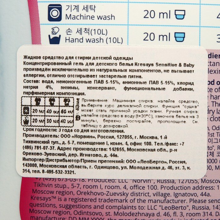 Гель Kreasays Sensitive & Baby гипоалергенный для стирки детской одежды, 3 л интересное: