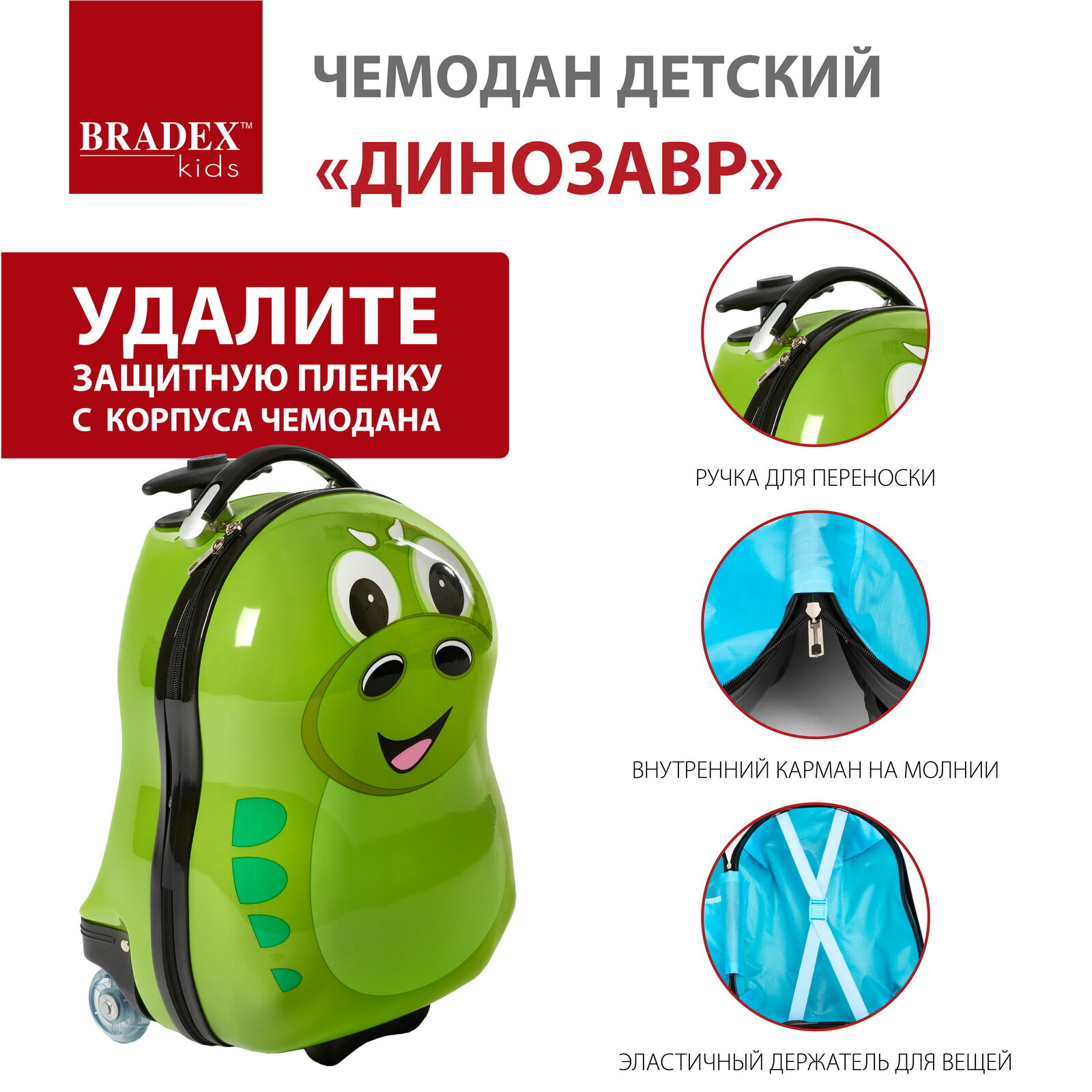 Чемодан на колесах детский ручная кладь "Динозавр" Bradex, для мальчиков, девочек, дорожный с телескопической ручкой интересное: