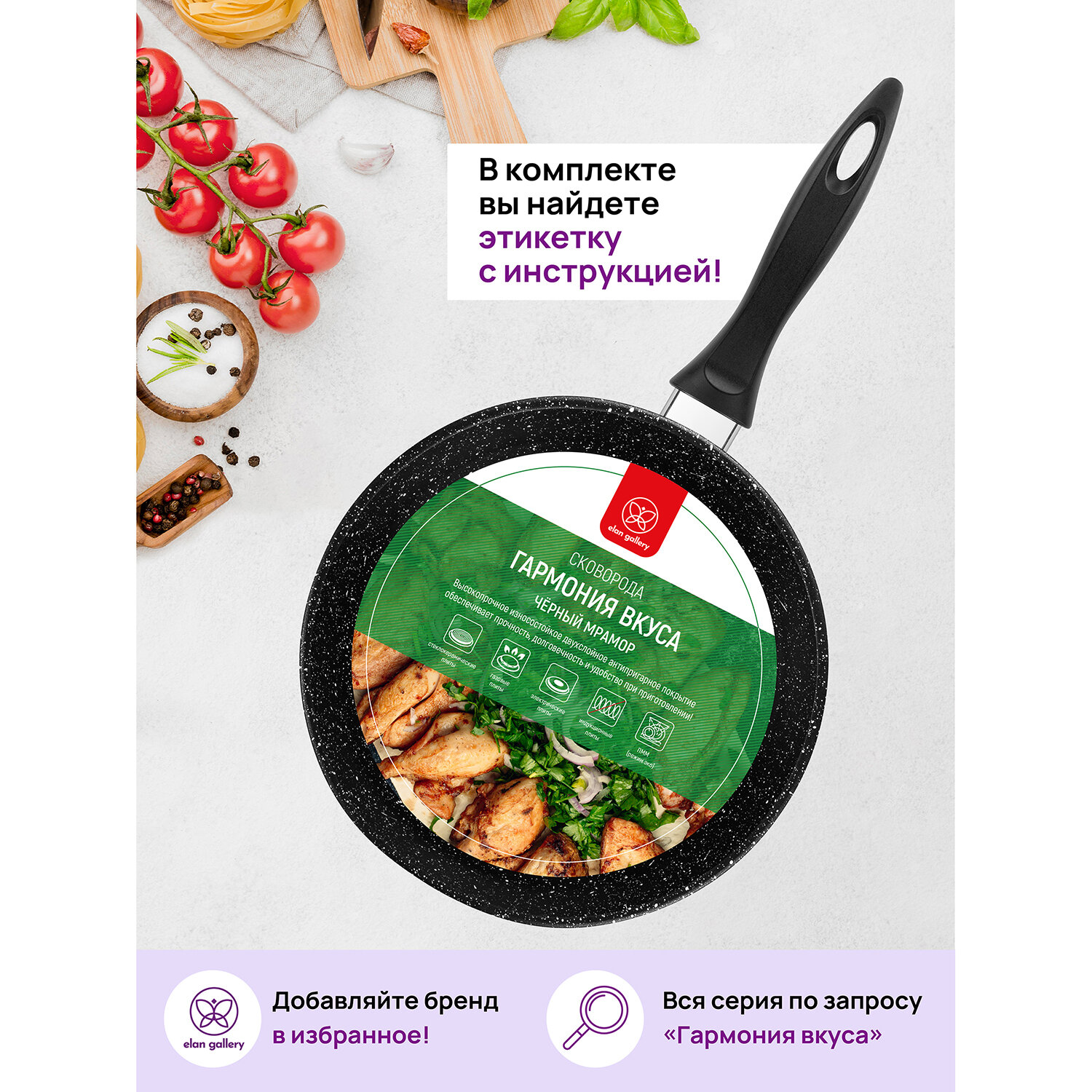 СохранитьСковорода глубокая 26 см Elan Gallery гармония вкуса Черный мрамор с крышкой с несъемной ручкой интересное: