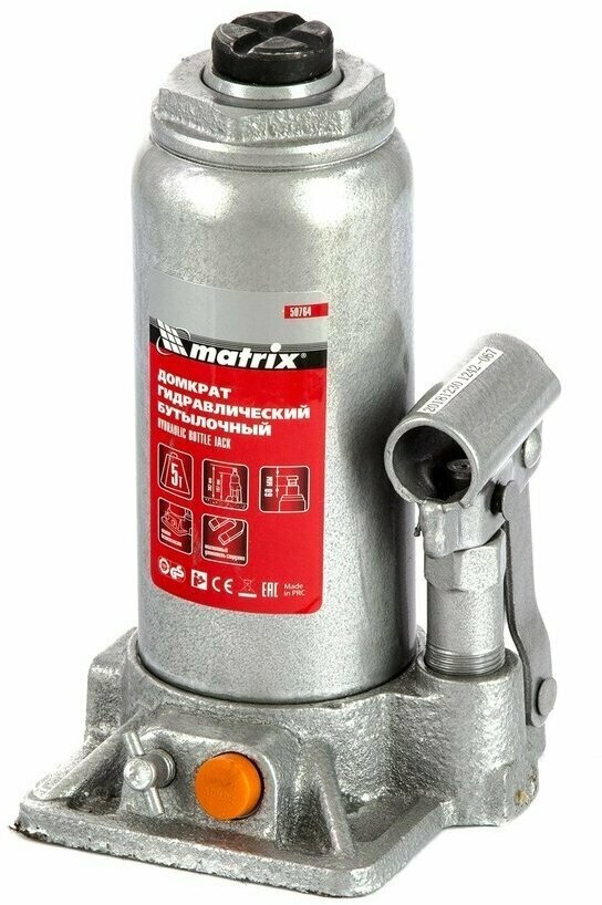 Домкрат гидравлический Matrix 50764, бутылочный, 5 т, высота подъема 197-382 мм .