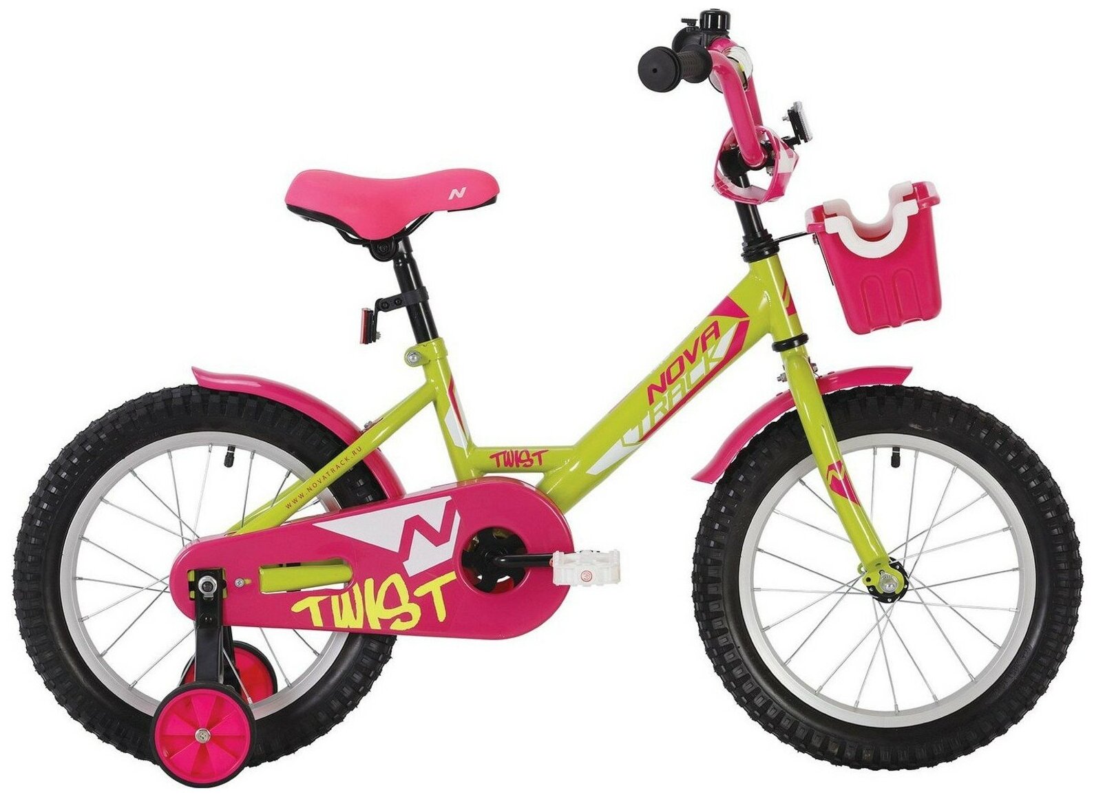 Велосипед NOVATRACK 18" TWIST розовый, тормоз нож, крылья корот, корзина, защита А-тип 181TWIST.PN20