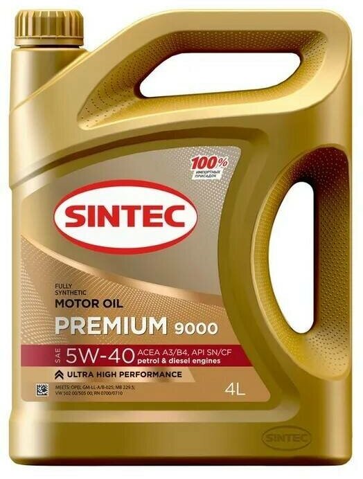 SINTEC Масло Sintec Premium 9000 5W-40 A3/B4 Sn/Cf 4Л (Старый Арт. 801971)