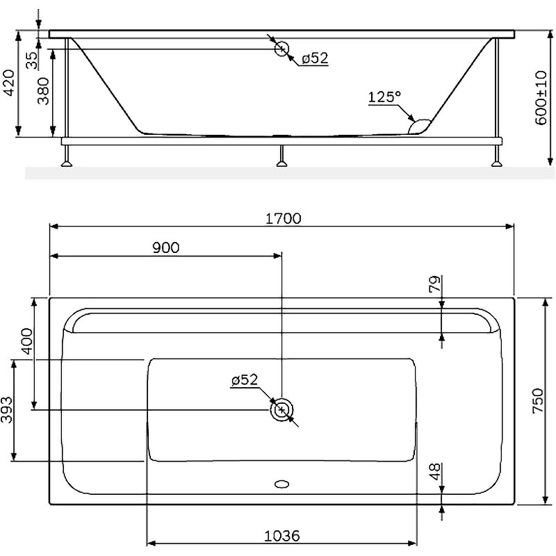 Акриловая ванна AM.PM Inspire 2.0 1700х750 W52A-170-075W-A