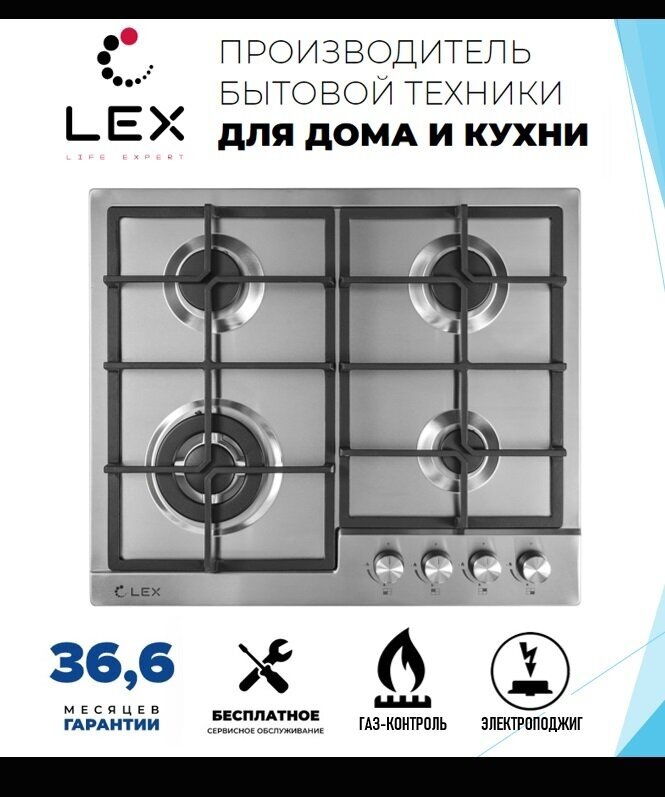 LEX Варочная поверхность LEX GVS 640 IX газовая, нержавеющая сталь