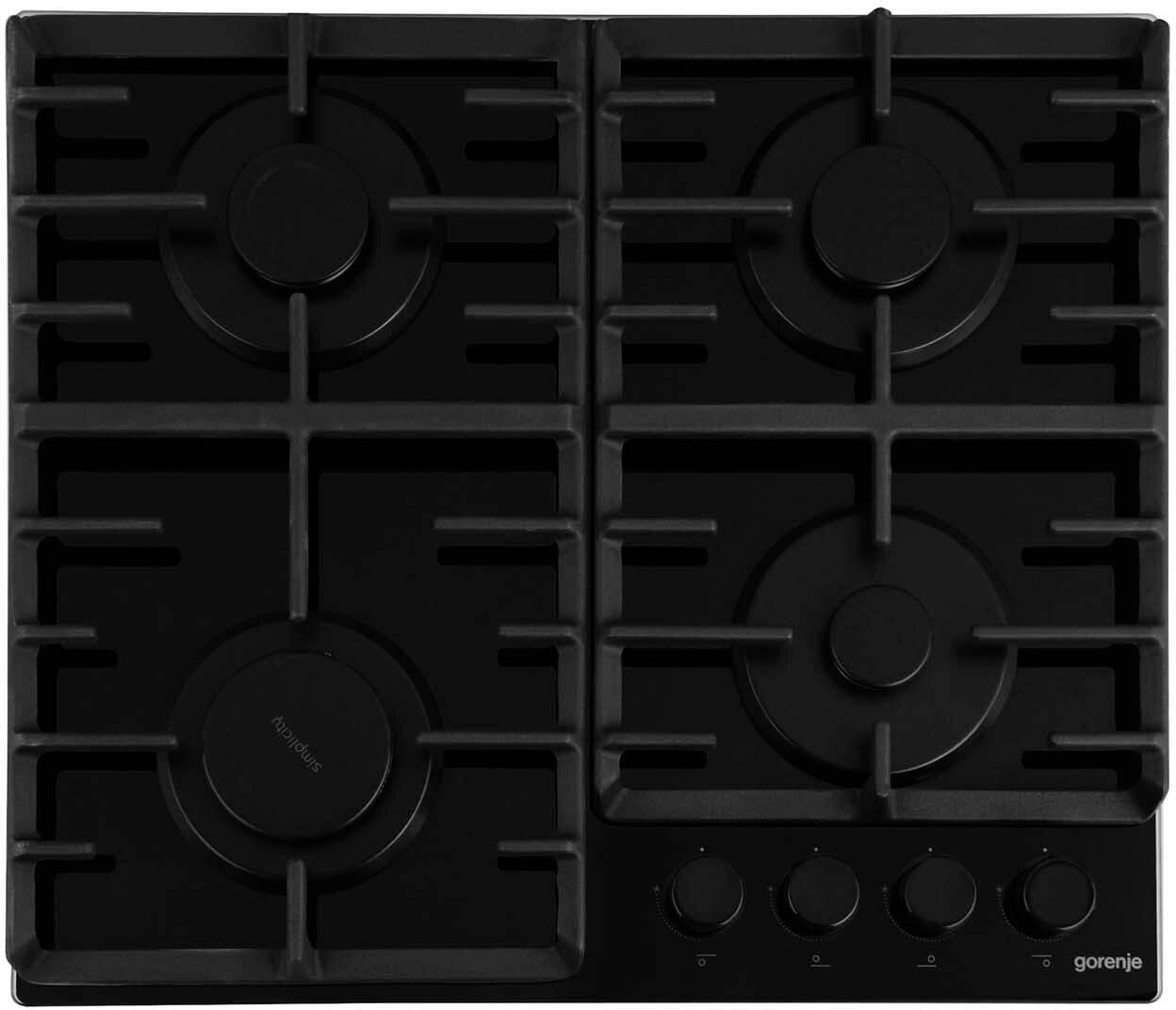 Варочная панель газовая встраиваемая Горенье GT642SYB закаленное стекло черный 600х520х136мм 4 конфорки 2 решетки / газконтроль / электроподжиг /
