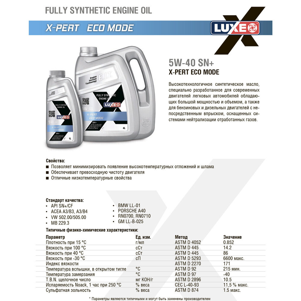 Масло моторное LUXE X-PERT ECO MODE 5W-40 SN/CF A3/B3/B4 синтетическое 4 л LUXE 30371 | цена за 1 шт