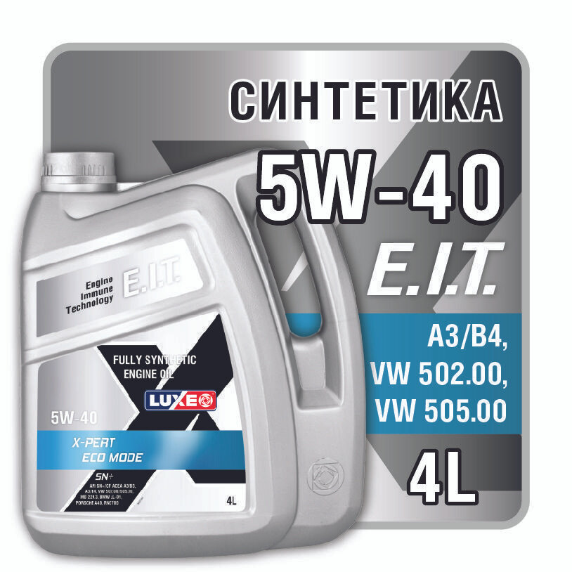 Масло моторное Luxe E.I.T. X-Pert Eco Mode 5w40, синтетическое, API SN Plus/CF, ACEA A3/B3/B4, универсальное, 4л, арт. 30371