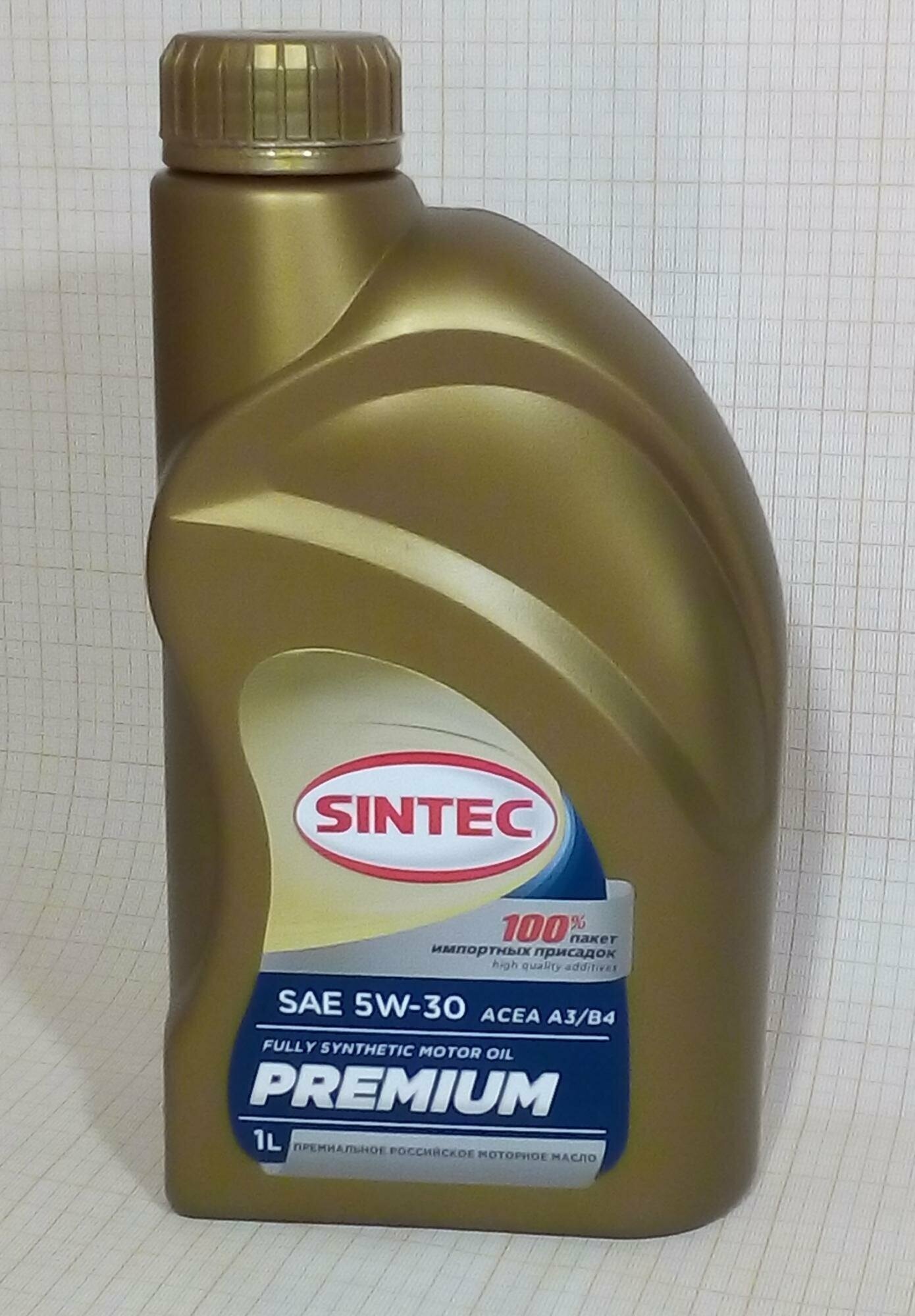 Купить Моторное масло SINTEC PREMIUM SAE 5W-30 API SL, ACEA A3/B4 Синтетическое 1 л