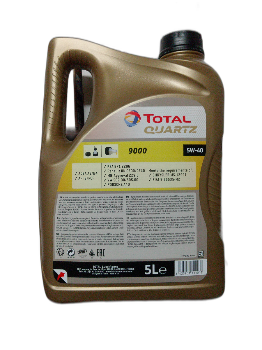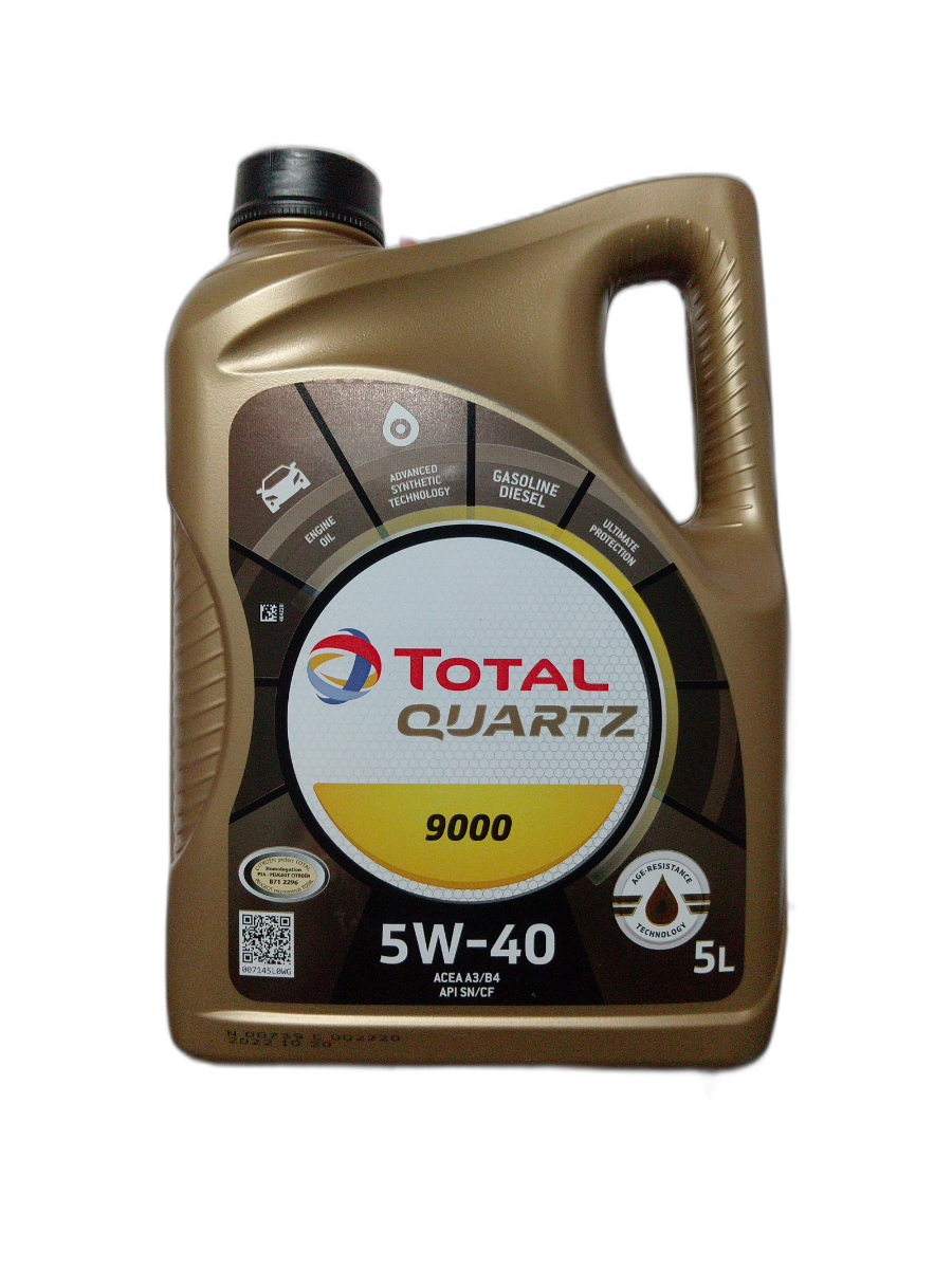 Синтетическое моторное масло TOTAL Quartz 9000 5W-40, 5 л (Европейский союз)