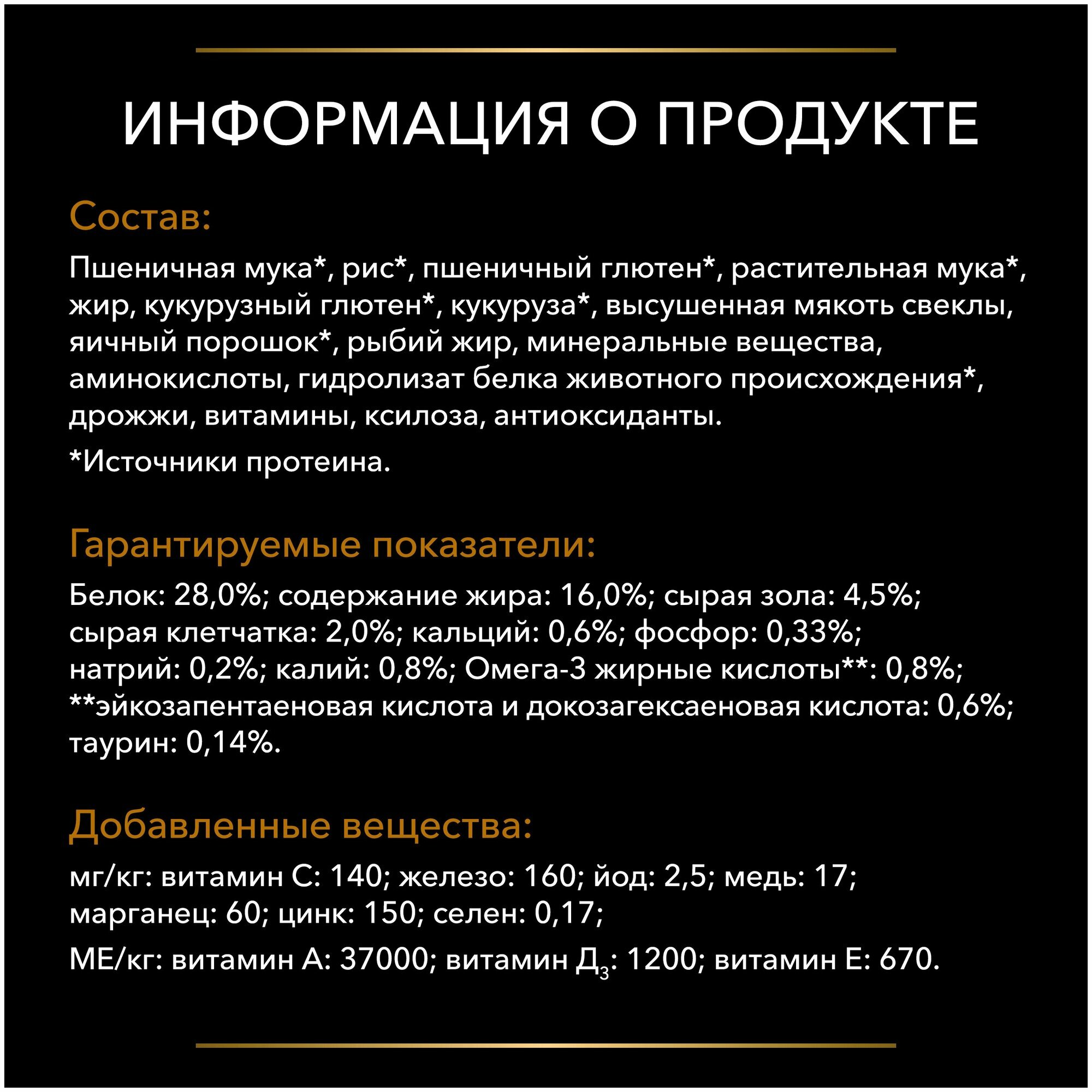 | Состав | пшеничная мука, рис, пшеничный глютен, растительная мука, жир, кукурузный глютен, кукуруза, высушенная мякоть свеклы, яичный порошок, рыбий жир, минеральные вещества, аминокислоты, гидролизат белка животного происхождения, дрожжи, витамины, ксилоза, антиоксиданты |