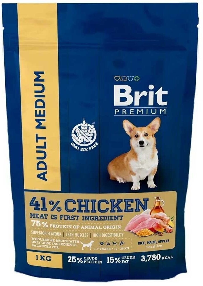 BRIT PREMIUM DOG ADULT MEDIUM для взрослых собак средних пород с курицей NEW 1 кг х 4 шт
