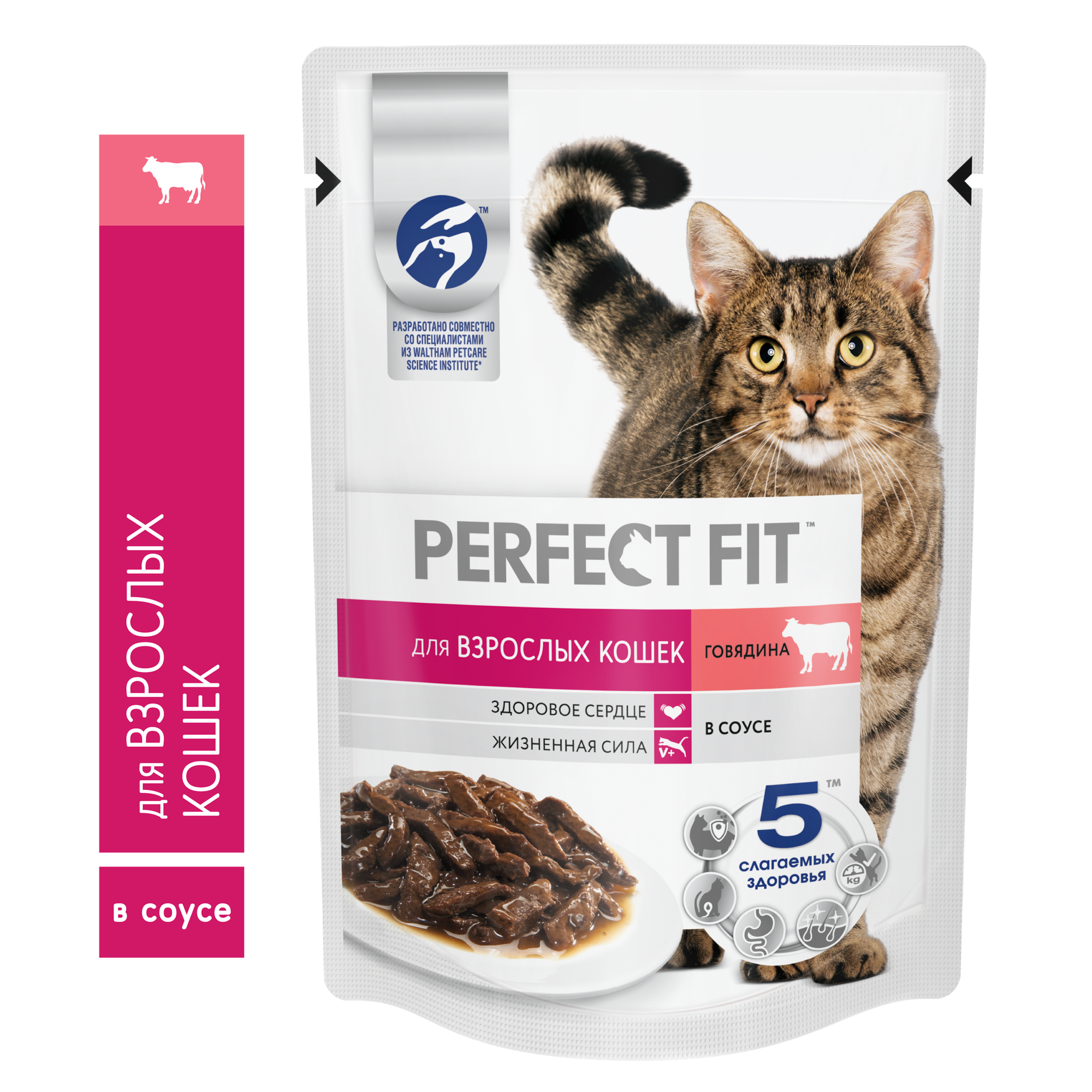 Купить Perfect Fit пауч для взрослых кошек (кусочки в соусе) Говядина, 75 г. упаковка 28 шт