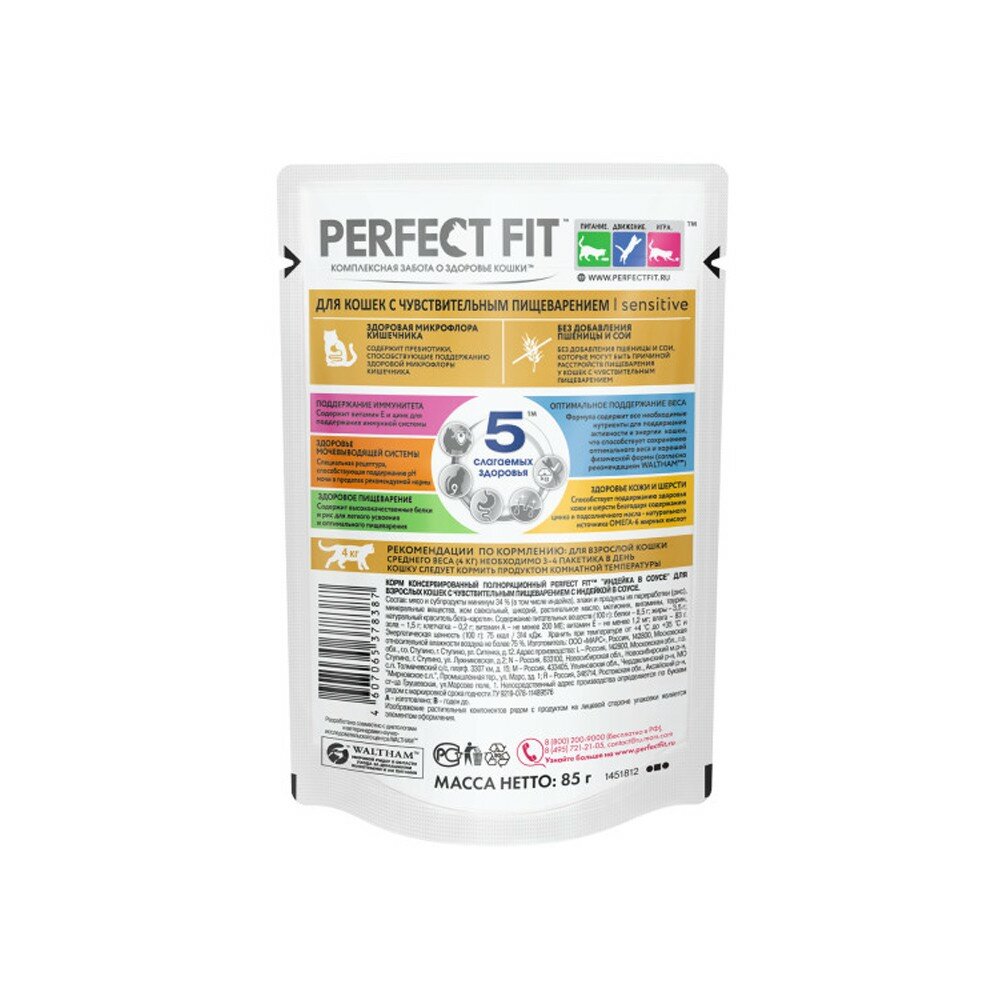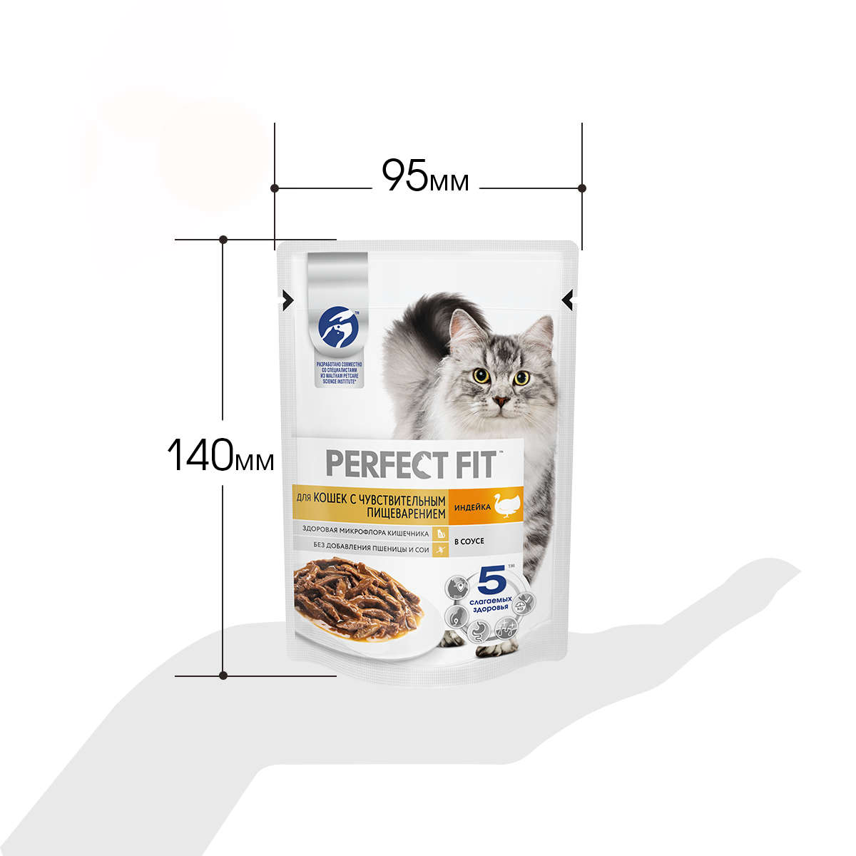 Влажный корм для кошек Perfect Fit при чувствительном пищеварении, с индейкой 85 г (кусочки в соусе)