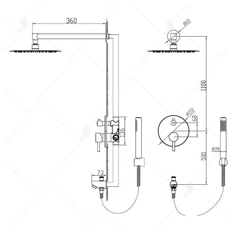 | Дополнительная информация | диаметр верхнего душа: 200 мм |