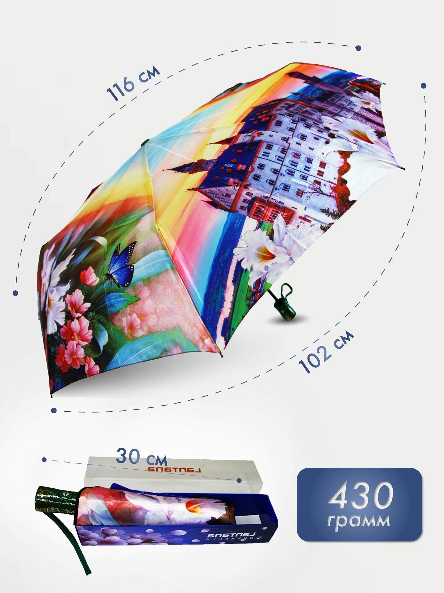 Женский зонт автомат/Monsoon umbrella M8042/голубой