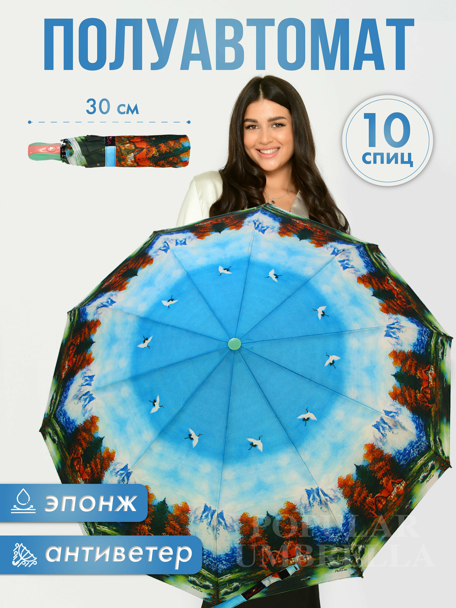 Зонт женский полуавтомат, зонтик взрослый складной антиветер 1693, белый,голубой
