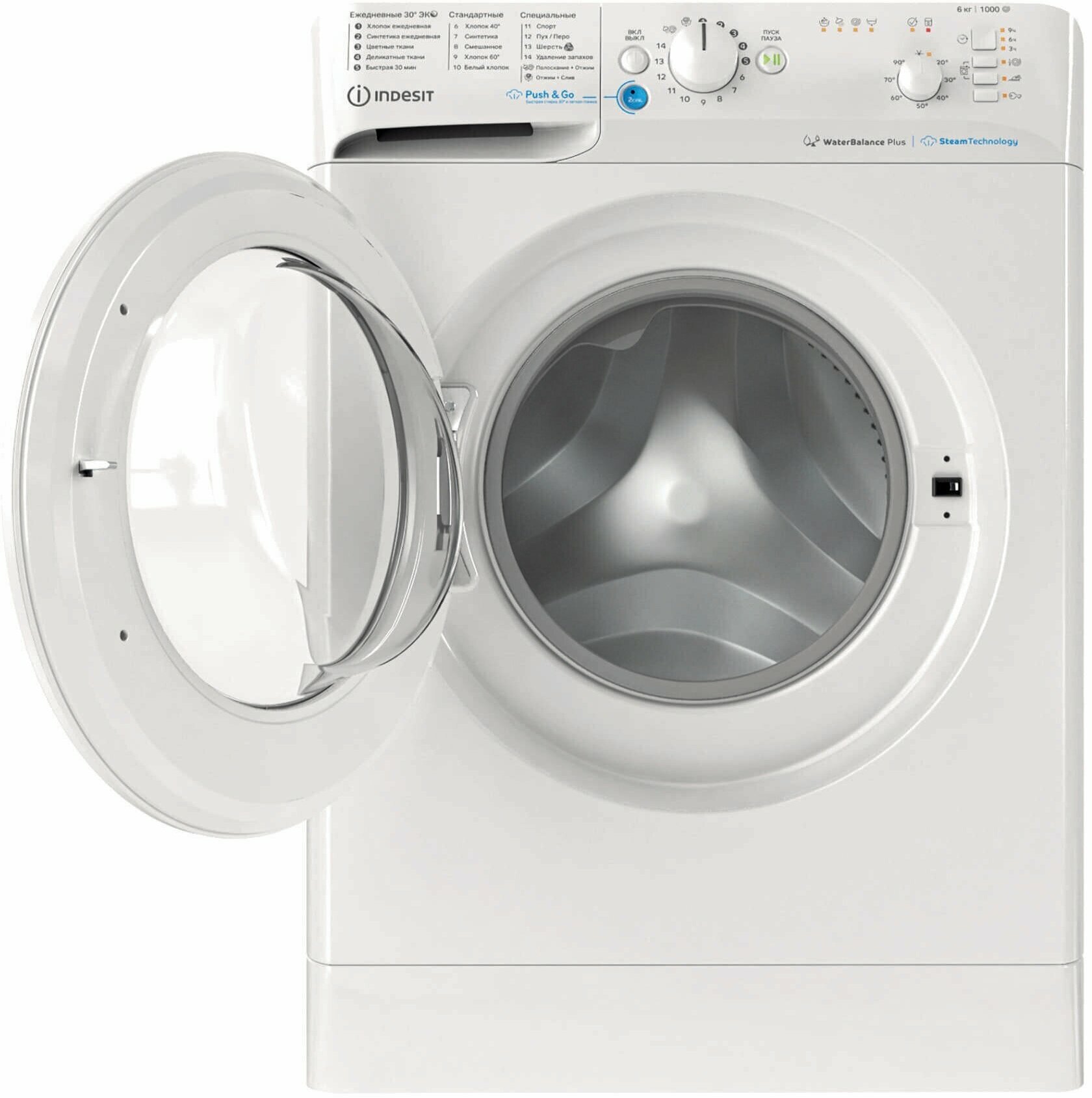 Стиральная машина Indesit BWSB 61051 WWV RU, макс. нагрузка 6 кг, отжим 1000 об/мин, 16 рабочих программ, цвет белый